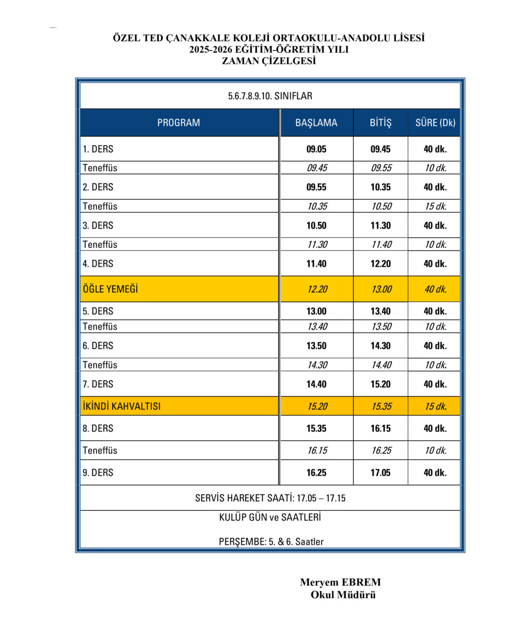 Haftalık Zaman Çizelgesi